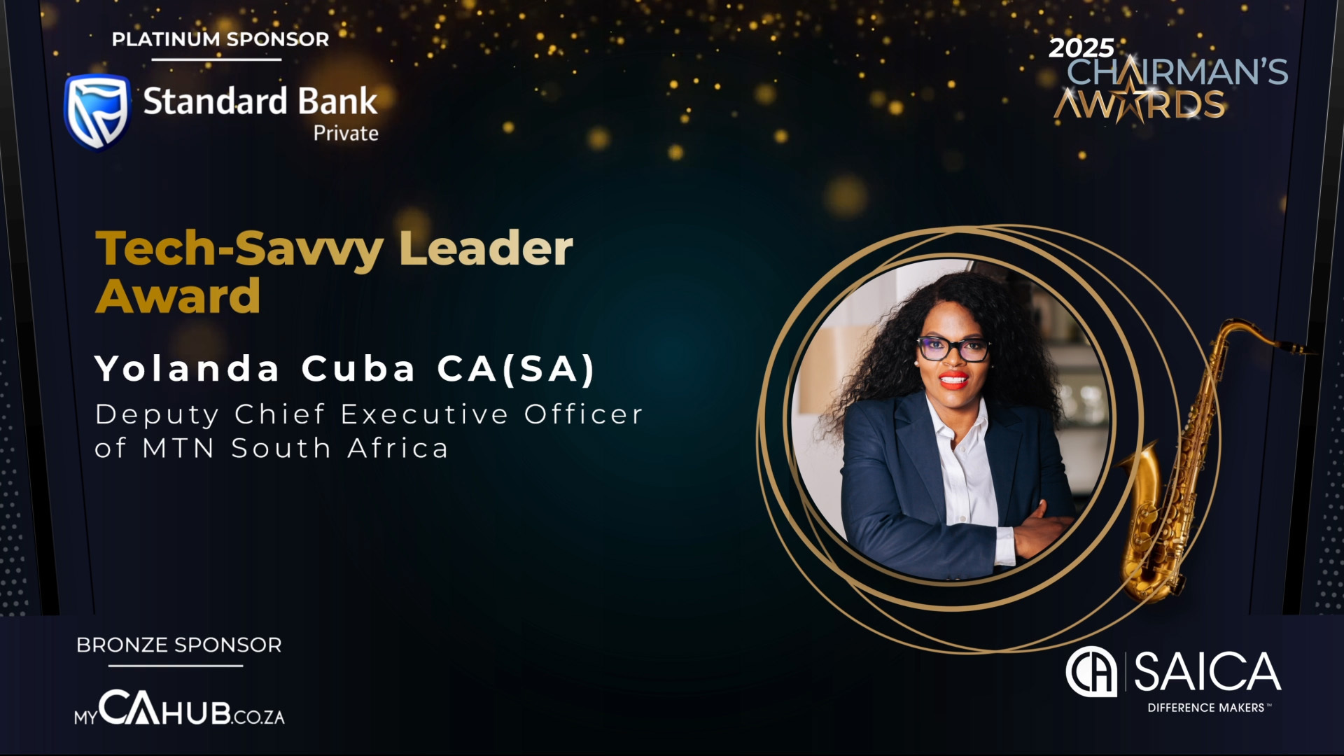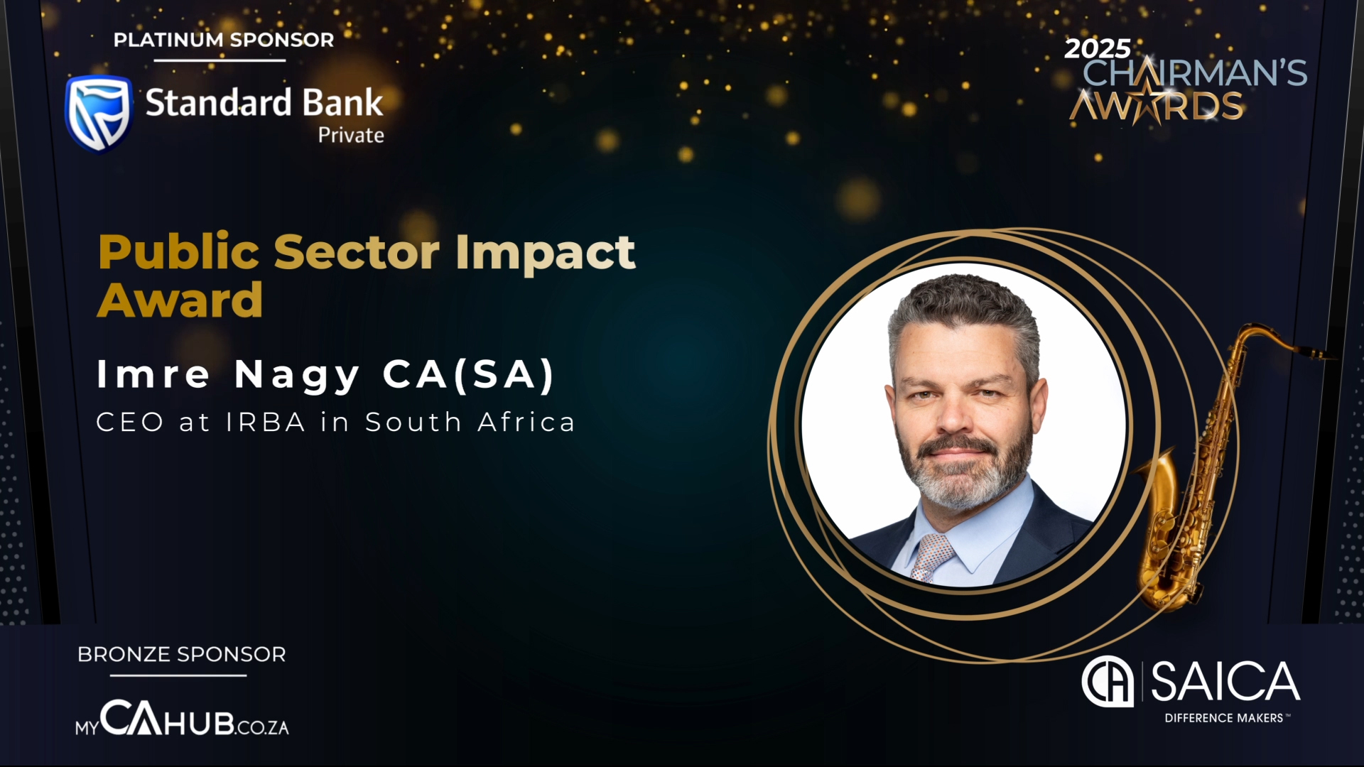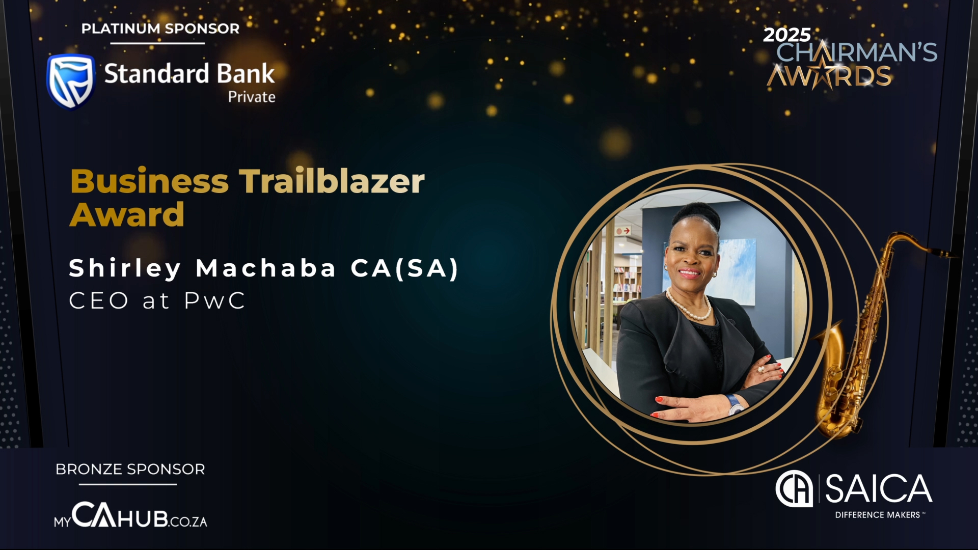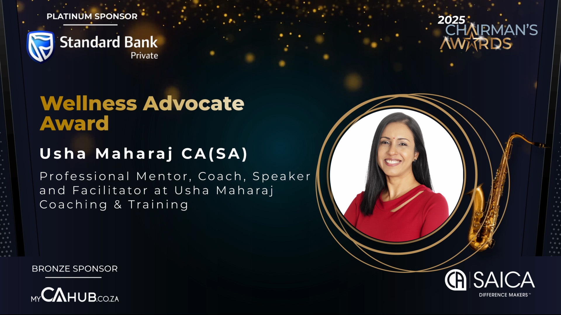 - SAICA Brand Ambassador Award: Actively promotes SAICA and its designations through branding, marketing and communication efforts, thought leadership or public engagement and/or has contributed to SAICA's development and advocacy efforts.