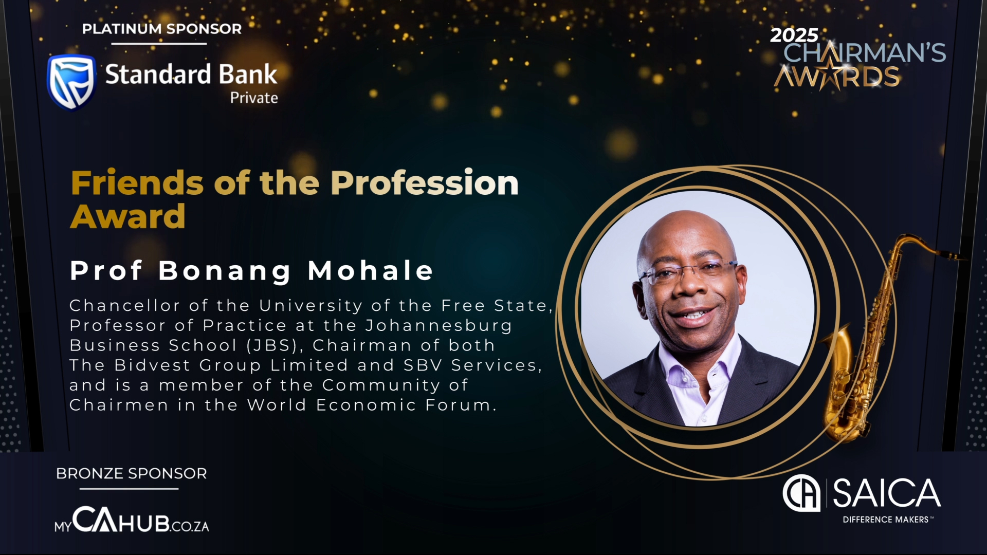 - Friends of the profession Award: Recognises an individual (not necessarily a CA(SA)) that has made an exceptional contribution to the advancement, development, or public perception of the accounting profession, its related disciplines, or SAICA itself. This could include significant support in areas like regulation, policy-making, strategic partnerships, or ethical governance.