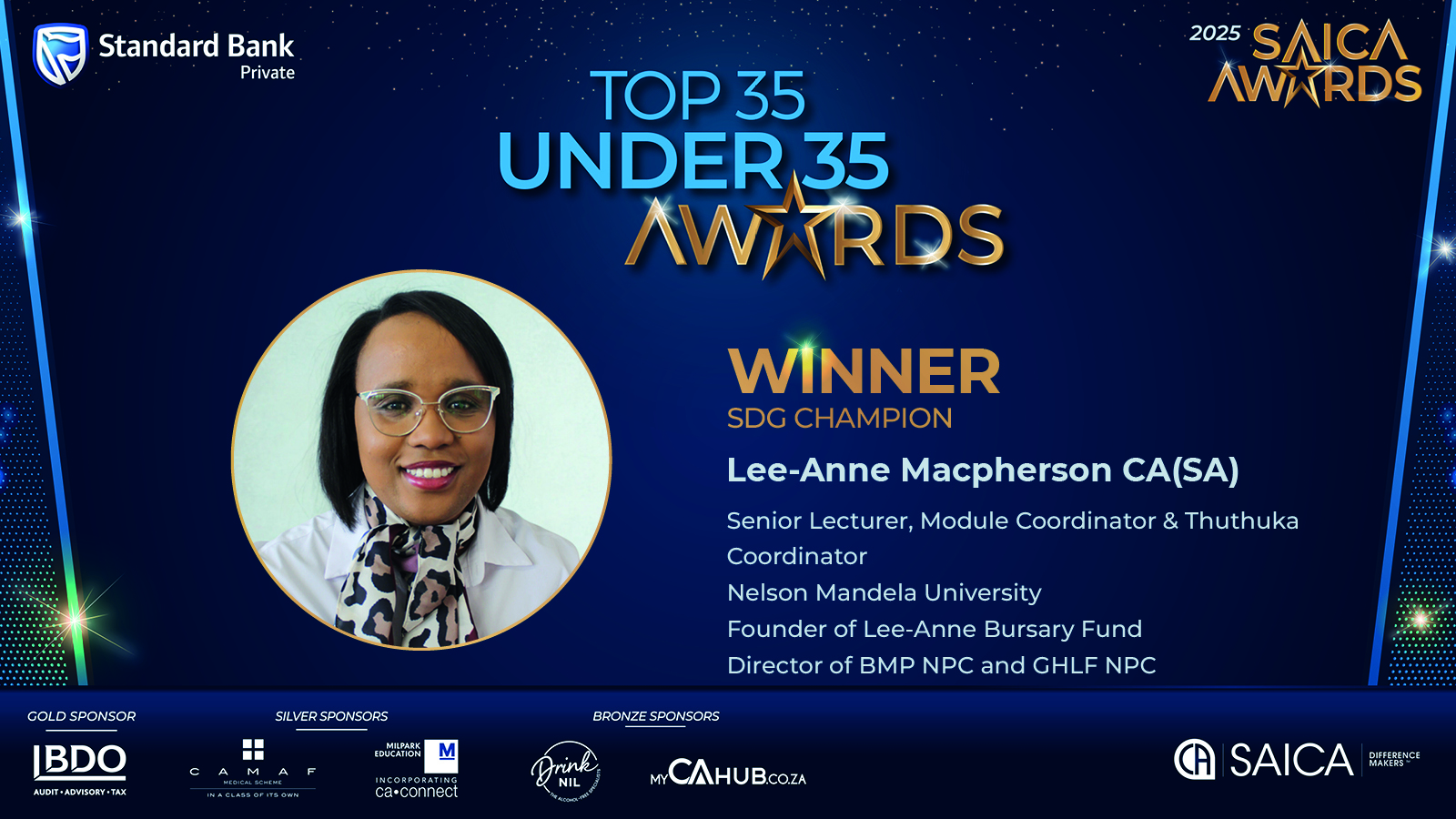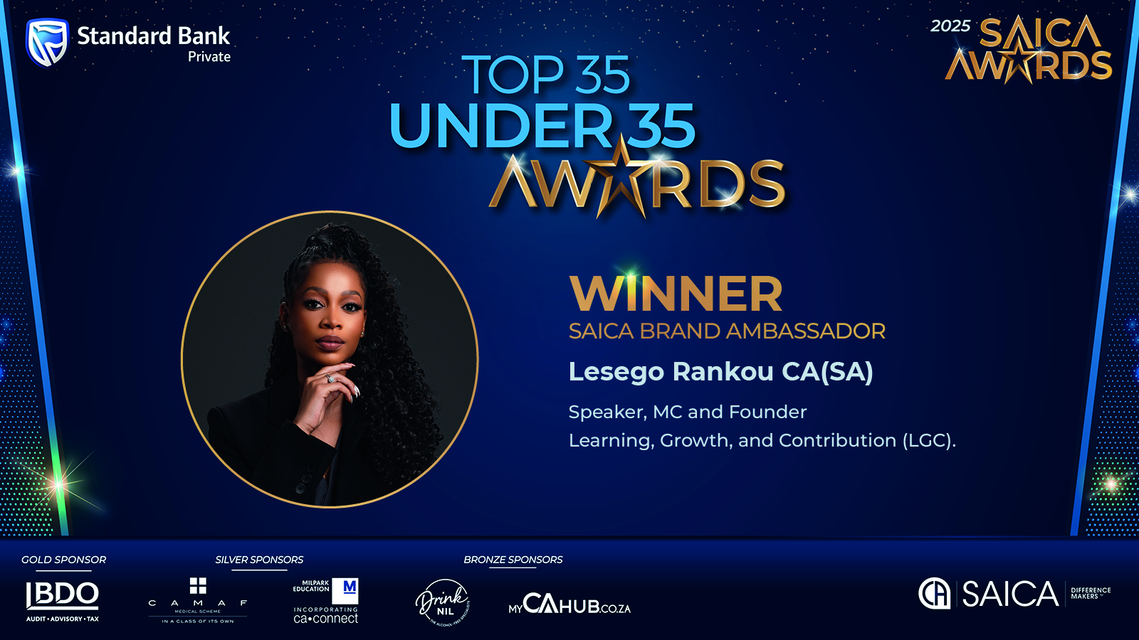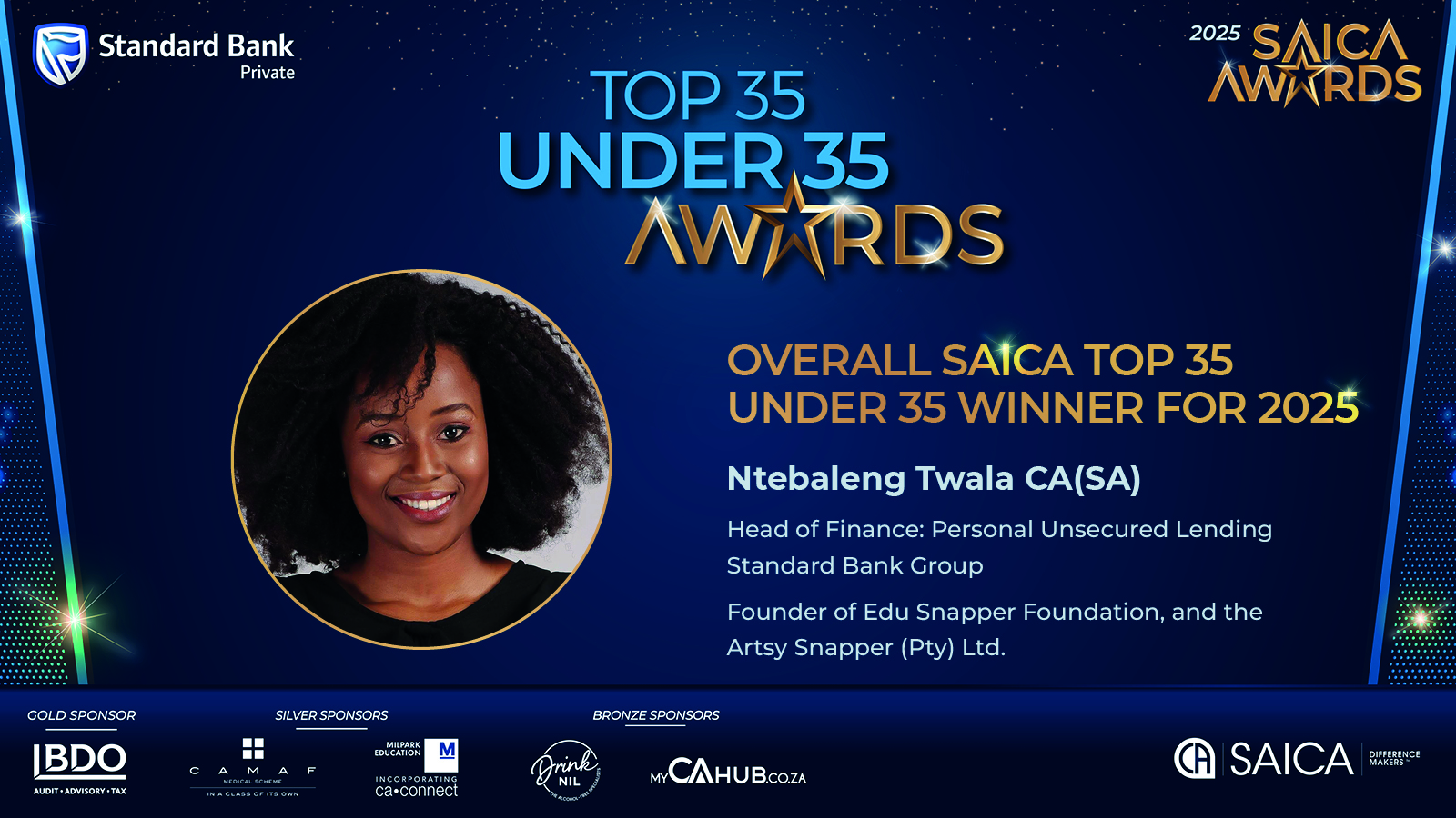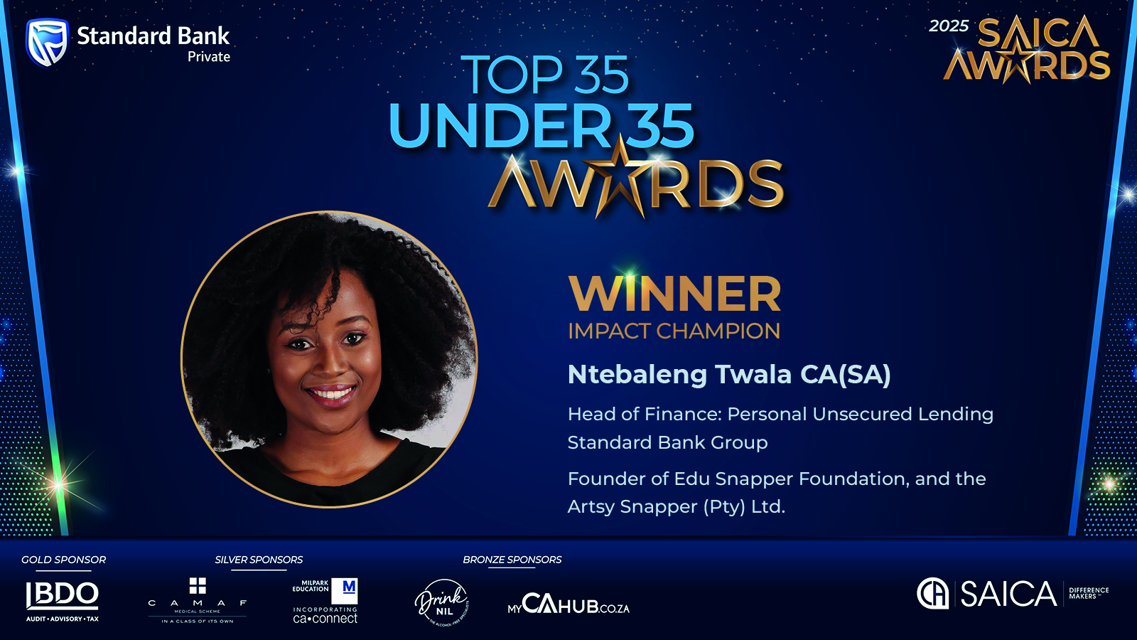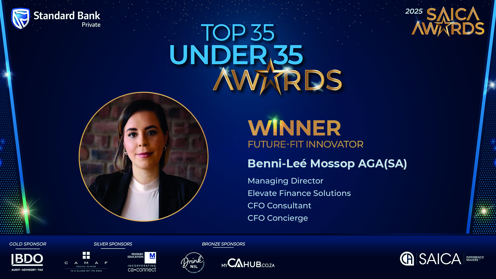 Top-35-under-35 AwardsMeet our 2025 Top 35-under-35 winnersOur sponsors:Standard BankPlatinum sponsorWebsiteBDOGold sponsorLearn MoreMilparkSilver sponsorWebsiteCAMAFSilver sponsorLearn MoreMyCAhubBronze sponsorWebsite
