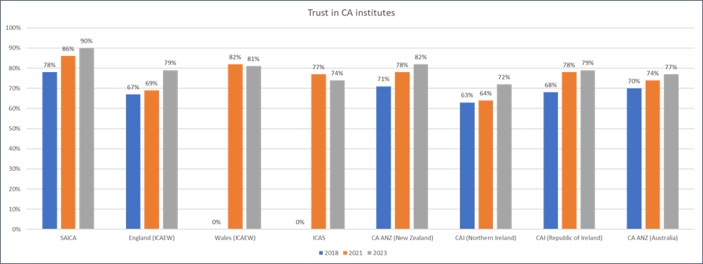 SAICA is proud to announce that South African Chartered Accountants [CAs(SA)] have earned the top position in a groundbreaking global professional trust survey conducted by Edelman, a respected research firm, on behalf of Chartered Accountants Worldwide (CAW).